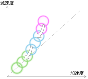 相関-加減速度 色分け 矢印1